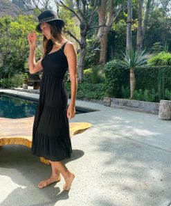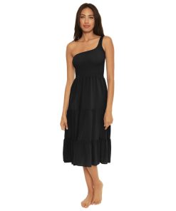 - Great dress for a day out on the town. in crinkle rayon with an asymetrical. smocked bodice with peasant tiered ruffles for a great flowy fit