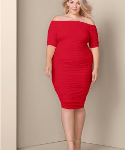 Top to bottom ruching gives your curves the love they deserve! Off-the-shoulder sleeves soften the bodycon silhouette of this dress. while the sheer mesh overlay goes a little longer than the lining to echo the femininity. Flaunt your figure in this romantic dress at your most dressed-up occasions.* Sizes: XS (2). S (4-6). M (8-10). L (12-14). XL (16)* Plus sizes: 1X (18-20). 2X (22-24). 3X (26-28)* If in between sizes. we recommend sizing down for a better fit* All-over ruched detail* Sheer mesh overlay* Body is lined* Hits below the knee 43* Fabric has stretch* Poly/spandex with poly lining. Imported