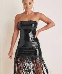 Be the first to review “Sequined Fringe Mini Dress – Jet Black” Cancel reply
