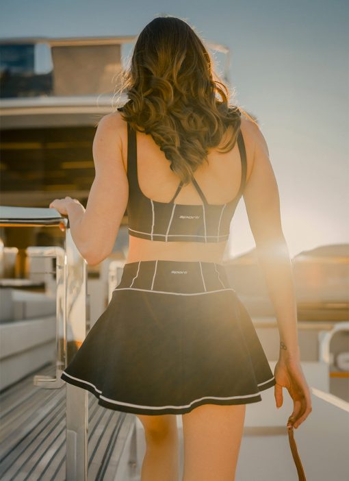 The Sporti x Emma Weyant Caviar Gracie Skort is a chic. easy-to-wear piece inspired by French fashion. This skort features a broad waistband that flatters all body types and includes a concealed side pocket large enough for a phone. blending style with practicality. Embrace both day and night in this trendy piece that infuses your look with a hint of French flair and elegance.